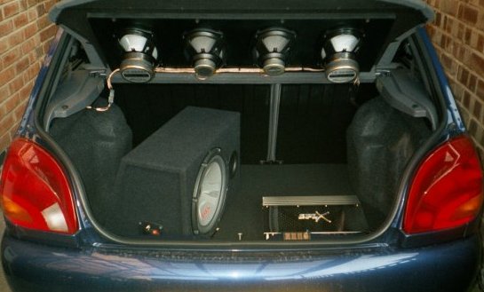 Pioneer CD Player (OEL model - DEH P6100R) with steering wheel remote control. Pioneer E-motion 13cm 3 way speakers 160w in original ford door location. Home made install with stealth shelf, aqua blue neon lighting and dynamat sound deadening. Pioneer 12" VCCS 600w sub. Pioneer 6x9's 200w. Pioneer E-motion 6x9's 300w. 1000 watt SPL-X Amp. Autoleads wiring - Gold plated competition range.