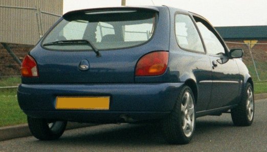 ESP Turismo front grill. Meshed Lower Grill. Colour coded door handles and rub strips. Colour coded and modified boot handle. Clear side repeaters. Clear rear clusters (modified fog & reverse light). Front brake callipers & rear drums painted silver. High level 3rd brake light fitted. De-badged. Lucas blue lighting headlight bulbs. Halfords laser blue sidelight bulbs. Blue Indicator bulbs. One-off high level boot spoiler. Colour coded bumpers and front fog lights. Half chrome roll cage.